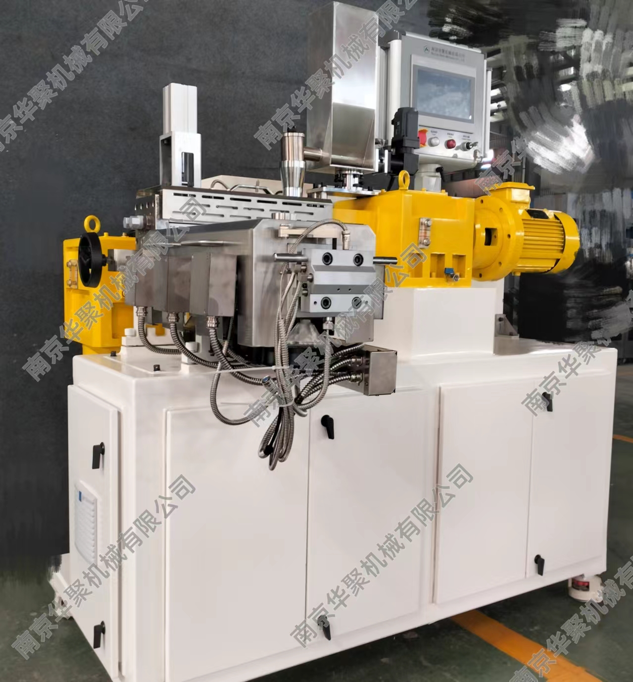 南京華聚機(jī)械有限公司致力于同向平行雙螺桿擠出機(jī)及連續(xù)密煉機(jī)的研發(fā)制造,在塑料改性、擠出發(fā)泡、高填充技術(shù)等相關(guān)領(lǐng)域擁有核心的技術(shù)和經(jīng)驗(yàn)。關(guān)鍵零部件如:連續(xù)密煉轉(zhuǎn)子及腔體、高扭矩齒輪箱、側(cè)向加料裝置、特殊工藝加工段等等均為自主研發(fā)。作為給客戶提供全套專(zhuān)業(yè)解決方案的“智造”商,華聚能為客戶提供以連續(xù)密煉和雙螺桿擠出應(yīng)用為核心,結(jié)合高效能單螺桿各類(lèi)擠出生產(chǎn)線的智能型成套裝備以及相關(guān)的工藝與工程領(lǐng)域技術(shù)開(kāi)發(fā)、產(chǎn)品制造直至交鑰匙工程;